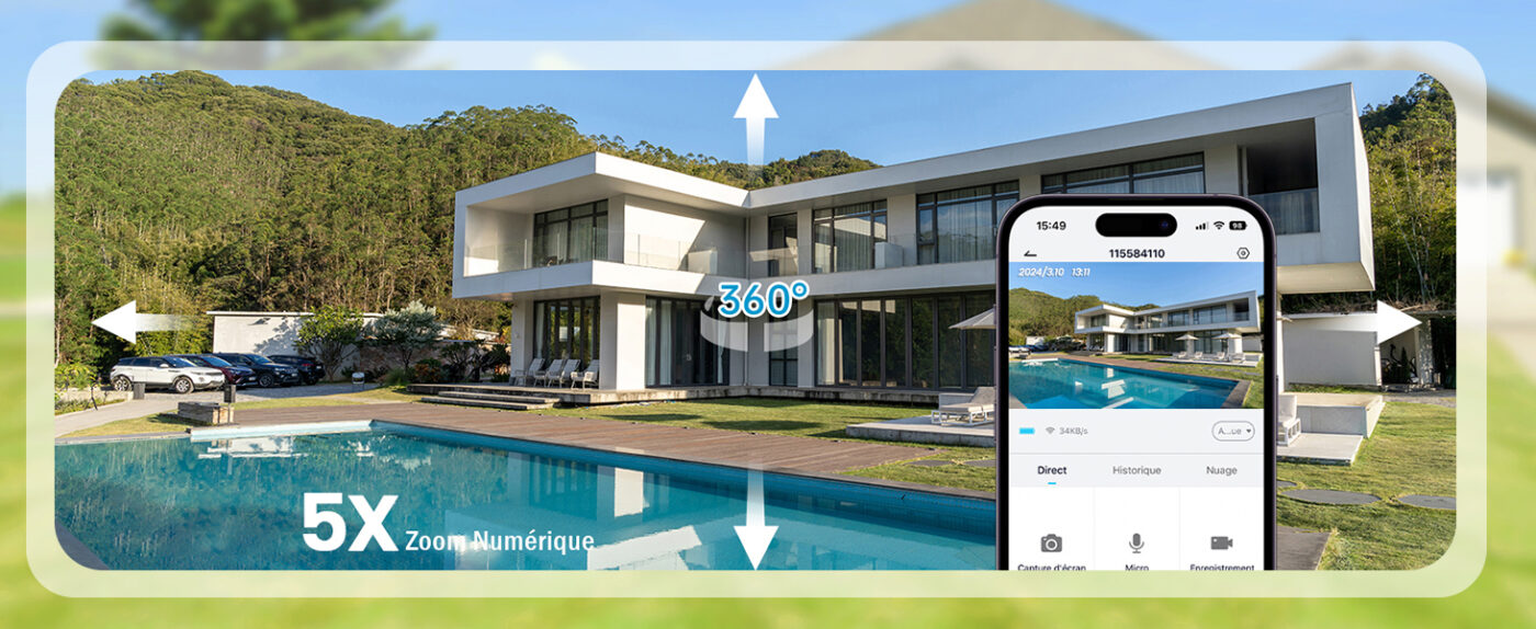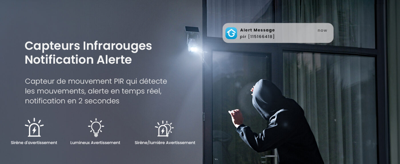 ✓ EN STOCK Caméra de surveillance extérieure 100% solaire en coloris noir discret avec rotation 360° PTZ (355° pan / 120° tilt). Résolution 2K/3MP avec vision nocturne couleur 15m. Détection IA intelligente pour réduire les fausses alertes. Sans fil, sans abonnement – fonctionne même en cas de coupure électrique. ✅ 5 Raisons de Choisir Cette Caméra : 3MP Ultra-Net PTZ Motorisé 100% Solaire Vision Nocturne Étanche Sans Abonnement Grâce à la technologie PTZ motorisée, cette caméra couvre 355° en rotation horizontale et 120° en inclinaison verticale. Une seule caméra remplace 4 caméras fixes ! Contrôlez la rotation en temps réel depuis l’app ou activez le suivi automatique : la caméra suit les mouvements détectés pour ne rien manquer. Équipée de 4 projecteurs LED (2 infrarouges + 2 blancs), cette caméra offre une vision nocturne 50% plus lumineuse que les modèles classiques. 3 modes au choix : 💡 Astuce : Activez les projecteurs manuellement depuis l’app pour éclairer votre allée la nuit. Le capteur PIR haute précision combiné à l’intelligence artificielle distingue automatiquement : Humains Animaux Véhicules Colis Recevez uniquement les alertes pertinentes. Réglez la sensibilité de 1 à 10 et personnalisez les zones de détection dans l’app. 💡 Résultat : Jusqu’à 90% de fausses alertes en moins par rapport aux caméras classiques sans IA. Cette caméra fonctionne entièrement à l’énergie solaire. Le panneau intégré recharge la batterie en continu, même par temps nuageux. Batterie de secours intégrée : En cas de plusieurs jours sans soleil, la batterie rechargeable prend le relais pour une autonomie continue. ✅ Avantages de l’alimentation solaire : En cas d’intrusion détectée, déclenchez 3 types d’alarmes pour faire fuir les intrus : Déclenchez l’alarme manuellement depuis l’app ou configurez le déclenchement automatique lors d’une détection de mouvement la nuit. Image ultra-nette 2304×1296 pixels pour identifier visages et plaques. Rotation 355° pan + 120° tilt, contrôle en temps réel ou suivi auto. Autonomie illimitée, batterie de secours, fonctionne sans électricité. 4 LED (2 IR + 2 blanches) pour vision couleur même la nuit. Reconnaissance humains/animaux/véhicules, 90% moins de fausses alertes. Micro + haut-parleur intégrés pour communiquer à distance. Sirène puissante + projecteur pour dissuader les intrus. Intégration Echo Show/Fire TV, contrôle vocal de votre surveillance. Pas besoin d’électricien. Pas de câbles à tirer. Installez votre caméra vous-même en quelques minutes : Téléchargez l’app ieGeek Cam sur iOS/Android, créez un compte. Connectez au WiFi Scannez le QR code, connectez votre réseau 2.4 GHz. Fixez la caméra Vissez le support ou utilisez l’adhésif 3M fourni. C’est prêt ! 📦 Tout est inclus : Support mural + vis + chevilles + adhésif 3M + câble USB + manuel en français + guide de démarrage rapide. Contrairement à Ring (40-100€/an obligatoire) ou Arlo (jusqu’à 130€/an), la caméra ieGeek fonctionne sans frais mensuels. L’app ieGeek Cam est 100% gratuite. Stockez vos vidéos en local sur carte SD (jusqu’à 128 Go) ou profitez de 7 jours de cloud offerts. Vous choisissez, sans engagement. 💸 Économies vs abonnements concurrents : Oui, cette caméra est 100% autonome grâce au panneau solaire intégré. La batterie de secours prend le relais si plusieurs jours consécutifs sont très nuageux. Vous pouvez également la recharger manuellement via le câble USB fourni si nécessaire. Avec ses 2 antennes 5dBi, la caméra offre une connexion stable jusqu’à environ 20-30 mètres du routeur selon les obstacles (murs, végétation). Elle ne fonctionne qu’en WiFi 2.4 GHz (pas en 5 GHz). Oui, l’app ieGeek Cam (gratuite sur iOS et Android) vous permet de voir le flux vidéo en direct, de contrôler la rotation PTZ, de recevoir des alertes et de parler via l’audio bidirectionnel, où que vous soyez. Oui, avec sa certification IP66, la caméra résiste à la pluie battante, à la neige, au gel et à la poussière. Elle fonctionne entre -20°C et +50°C, parfaite pour toutes les saisons en France. Le capteur PIR détecte les mouvements, puis l’intelligence artificielle analyse l’image pour distinguer les humains des animaux, véhicules ou mouvements de branches. Vous pouvez régler la sensibilité de 1 à 10 dans l’app pour personnaliser les alertes. Oui, la caméra accepte les cartes microSD jusqu’à 128 Go (non incluse). C’est l’option idéale pour un stockage local sans frais. Vous avez aussi 7 jours de cloud gratuit inclus. Oui, elle est compatible avec Amazon Alexa. Vous pouvez afficher le flux vidéo sur votre Echo Show ou Fire TV avec la commande vocale « Alexa, montre-moi [nom de la caméra] ». Le manuel en français est inclus dans la boîte. Vous pouvez également le télécharger depuis l’app ieGeek Cam ou contacter le service client qui répond sous 24h en semaine. Le coloris noir offre plusieurs avantages : il est plus discret sur les façades sombres, les portails ou les murs en pierre. Il se fond mieux dans l’environnement nocturne et présente une esthétique moderne qui s’intègre harmonieusement à la plupart des architectures. C’est le choix idéal pour une surveillance discrète. 💡 Notre verdict : La caméra ieGeek ZY C2 offre le meilleur rapport qualité-prix avec panneau solaire intégré, rotation PTZ complète et aucun abonnement. Ring reste la référence en qualité logicielle mais impose des frais mensuels élevés. 🎯 Notre recommandation : La caméra ieGeek solaire 360° noire est idéale pour une surveillance discrète sur façades sombres, portails ou murs en pierre. Parfaite pour les budgets serrés cherchant une solution complète sans abonnement. Remplacement gratuit en cas de défaut constaté. Pas satisfait = remboursement intégral. Équipe technique réactive en semaine. E