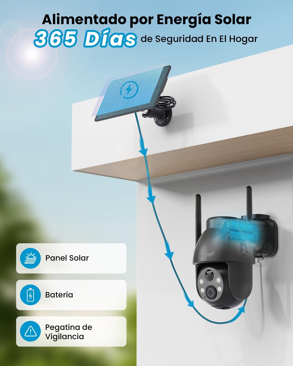 Caméra Surveillance Solaire 2K Noir | ieGeek 360° PTZ